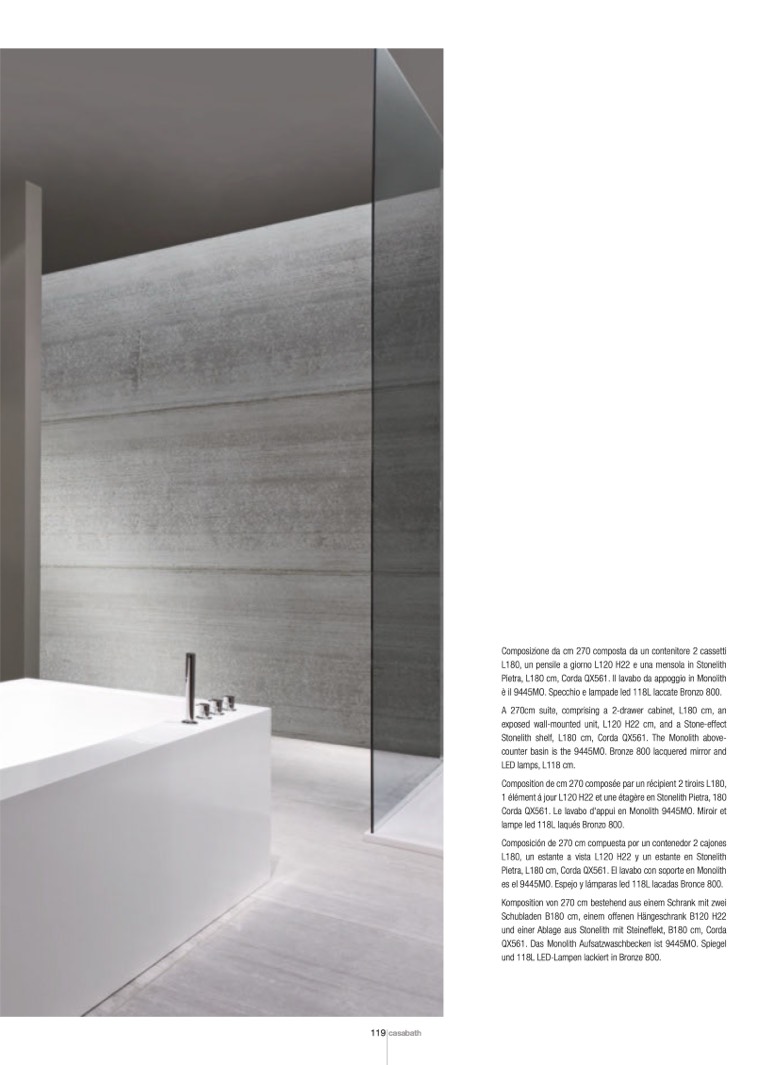 Pietra, L180 cm, Corda QX561. Il lavabo da appoggio in Monolith