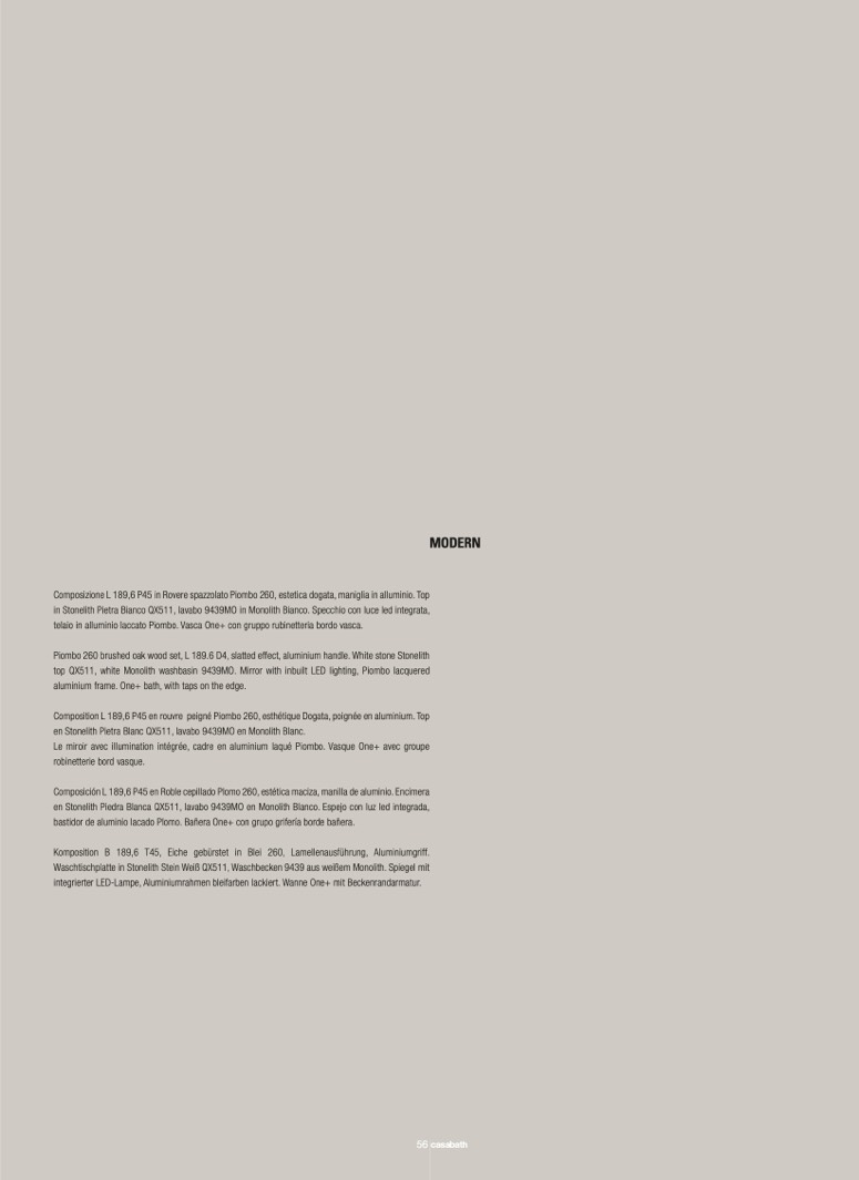 top QX511, white Monolith washbasin 9439MO. Mirror with inbuilt LED lighting, Piombo lacquered