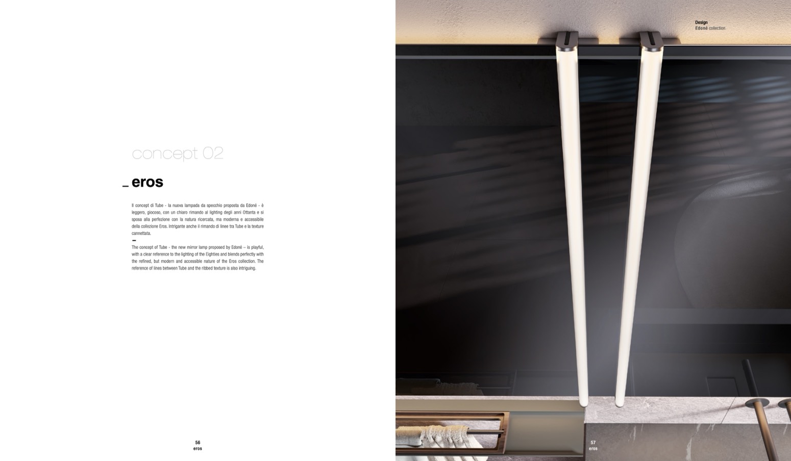 Il concept di Tube - la nuova lampada da specchio proposta da Edoné - è