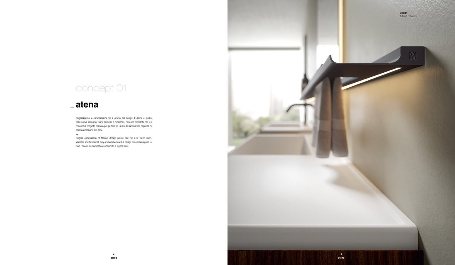 Elegant combination of Atena’s design profile and the new Tauro shelf.
