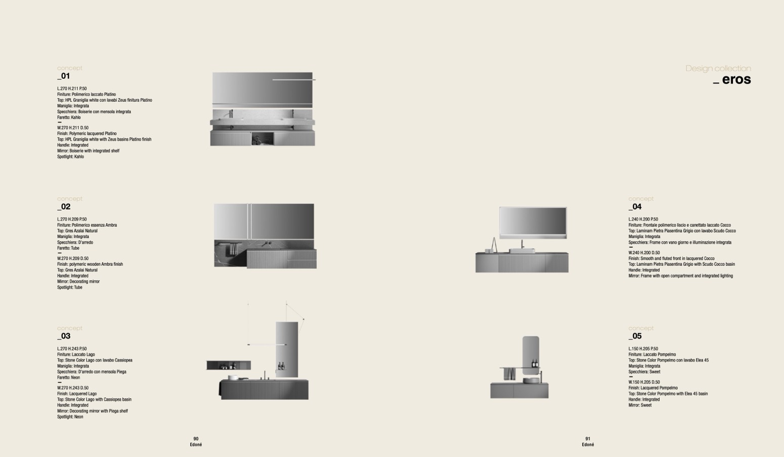 Top: HPL Graniglia white with Zeus basins Platino finish