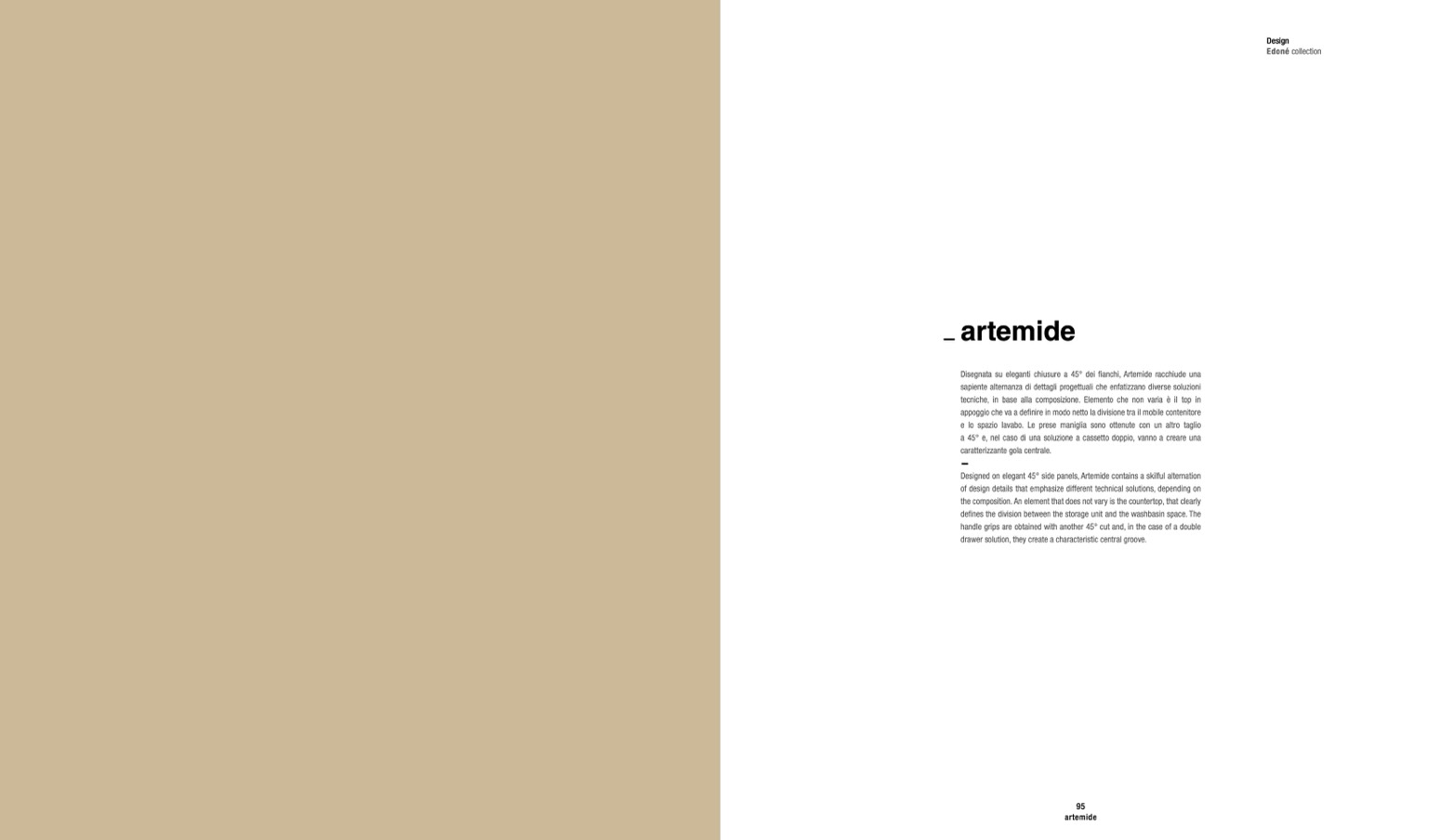 Designed on elegant 45° side panels, Artemide contains a skilful alternation