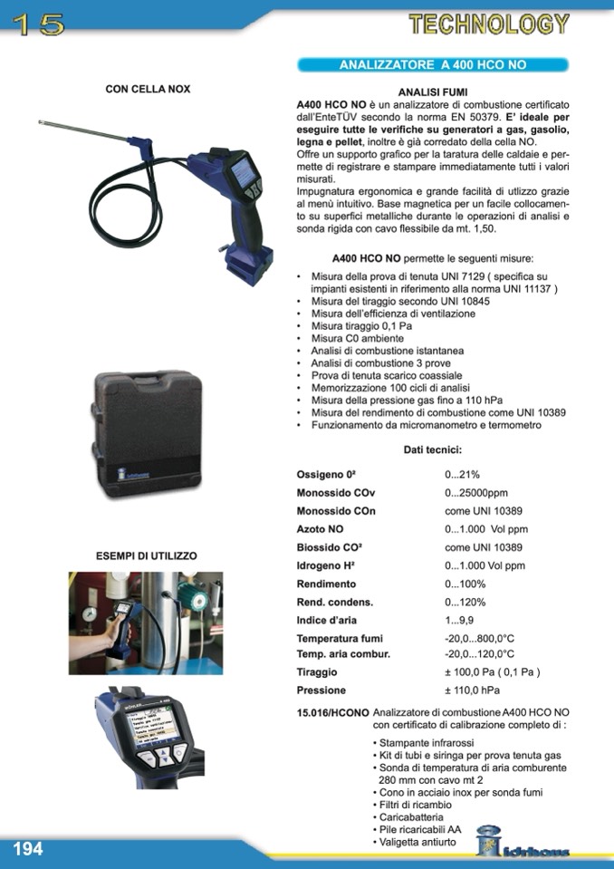 15.016/HCONO Analizzatore di combustione A400 HCO NO