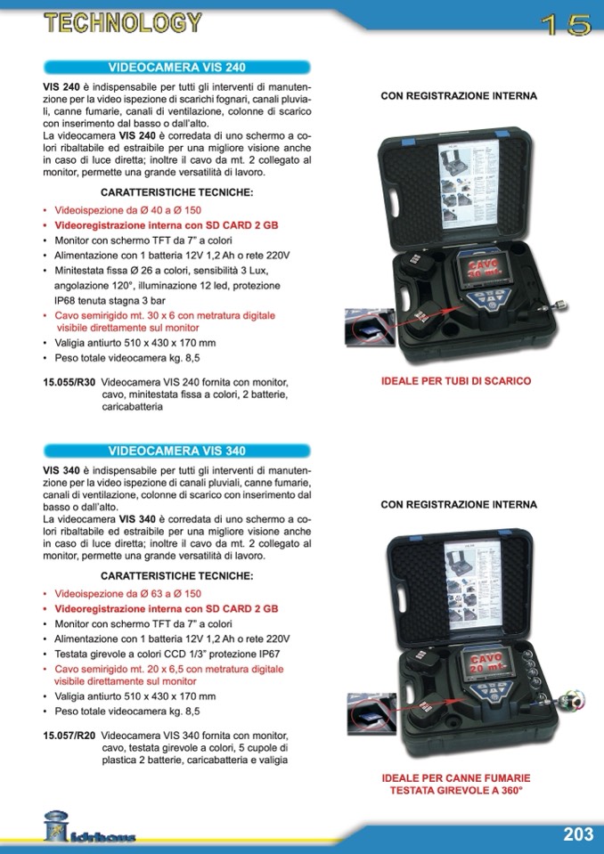 zione per la video ispezione di scarichi fognari, canali pluvia-