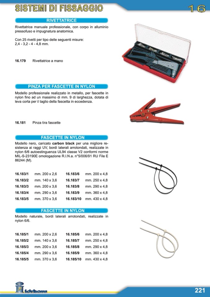 Con 25 rivetti per tipo delle seguenti misure: