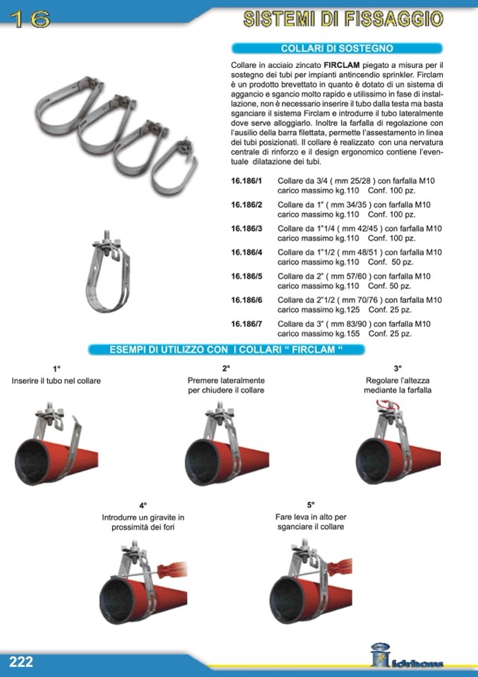 sostegno dei tubi per impianti antincendio sprinkler. Firclam