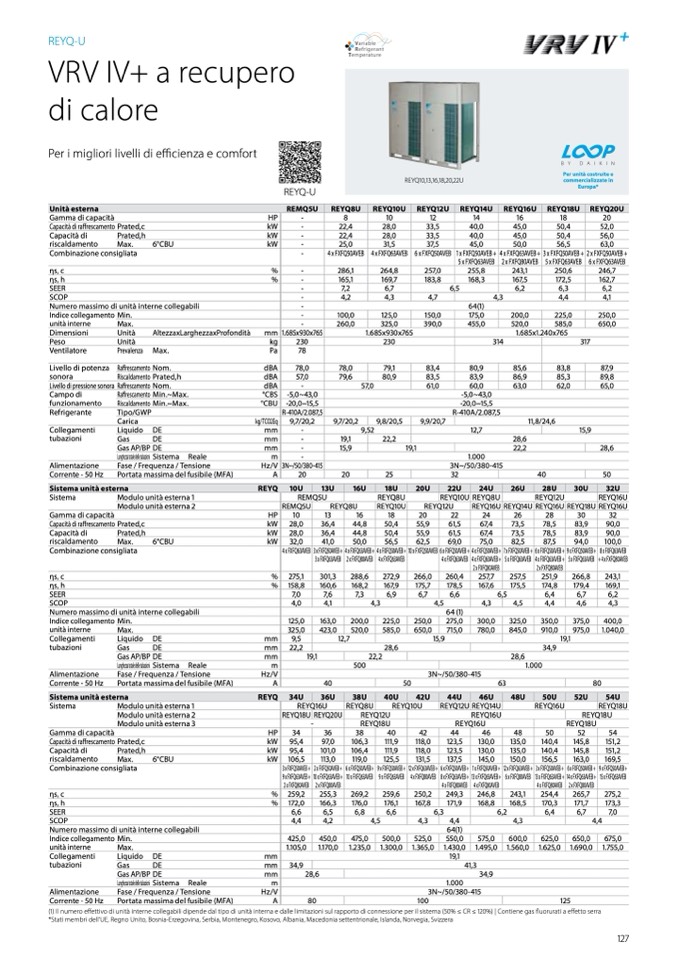 à interna e dalle limitazioni sul rapporto di connessione per il sistema (50% ≤ CR ≤ 120%) | Contiene gas fluorurati a effetto serra