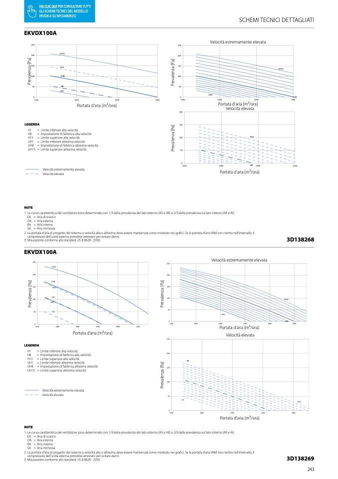 2. La portata d'aria di progetto del sistema a velocità alta o altissima deve essere mantenuta come mostrato nei gra