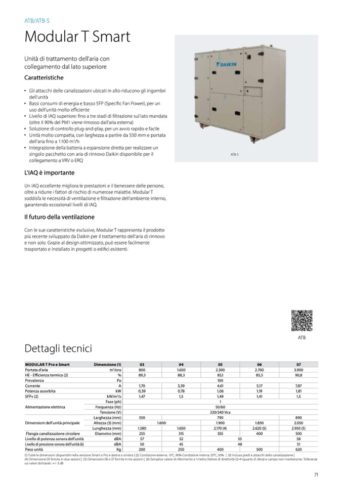 (1) Tutte le dimensioni disponibili nella versione Smart o Pro e destra o sinistra | (2) Condizione esterna: -5°C, 90% Condizione interna: 25°C, 50% | (3) Incluso piedi e attacchi della canalizzazione |