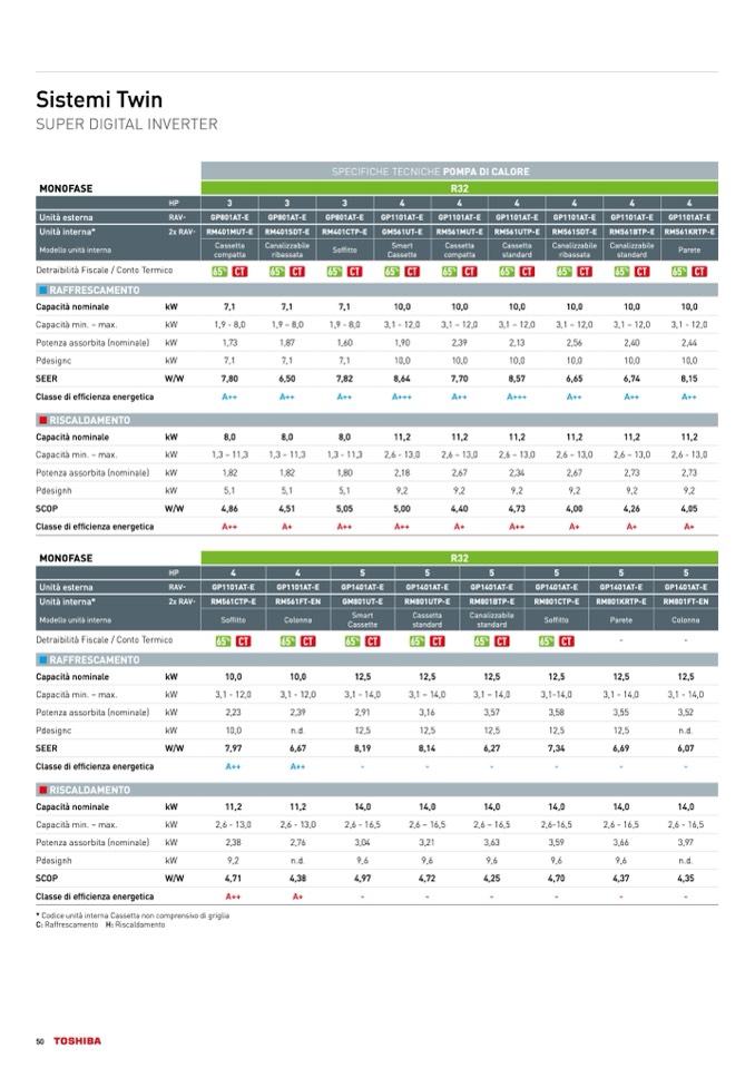 C: Raffrescamento H: Riscaldamento