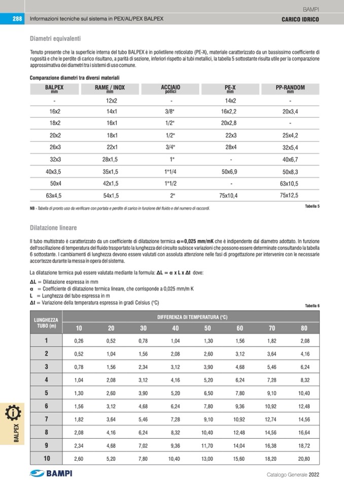 Tenuto presente che la superficie interna del tubo BALPEX è in polietilene reticolato (PE-X), materiale caratterizzato da un bassissimo coefficiente di