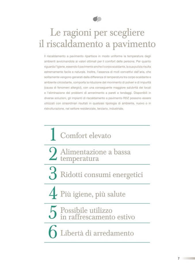 diverse soluzioni, gli impianti di riscaldamento a pavimento RDZ possono essere