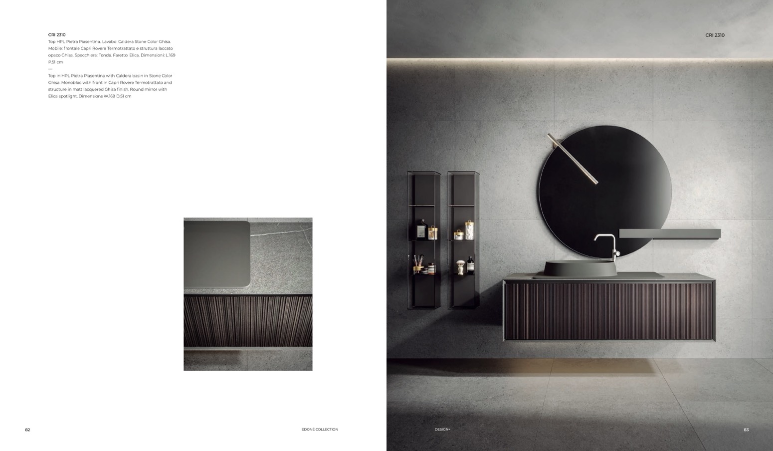 opaco Ghisa. Specchiera: Tonda. Faretto: Elica. Dimensioni: L.169