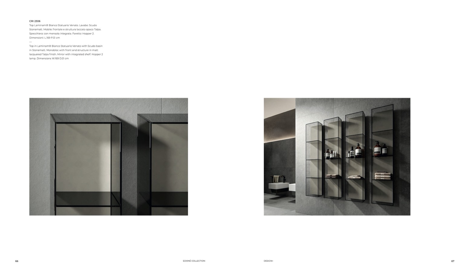 lacquered Talpa finish. Mirror with integrated shelf. Hopper 2
