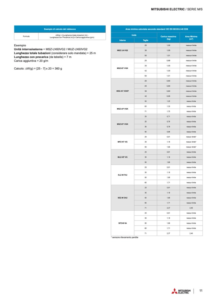 Area minima calcolata secondo standard CEI EN 60335-2-40 ED6