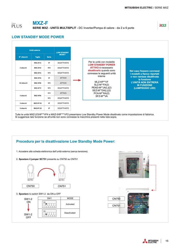 Tutte le unità MXZ-2/3/4F**VF4 e MXZ-5/6F***VF2 presentano Low Standby Power Mode disattivato come impostazione di fabbrica.