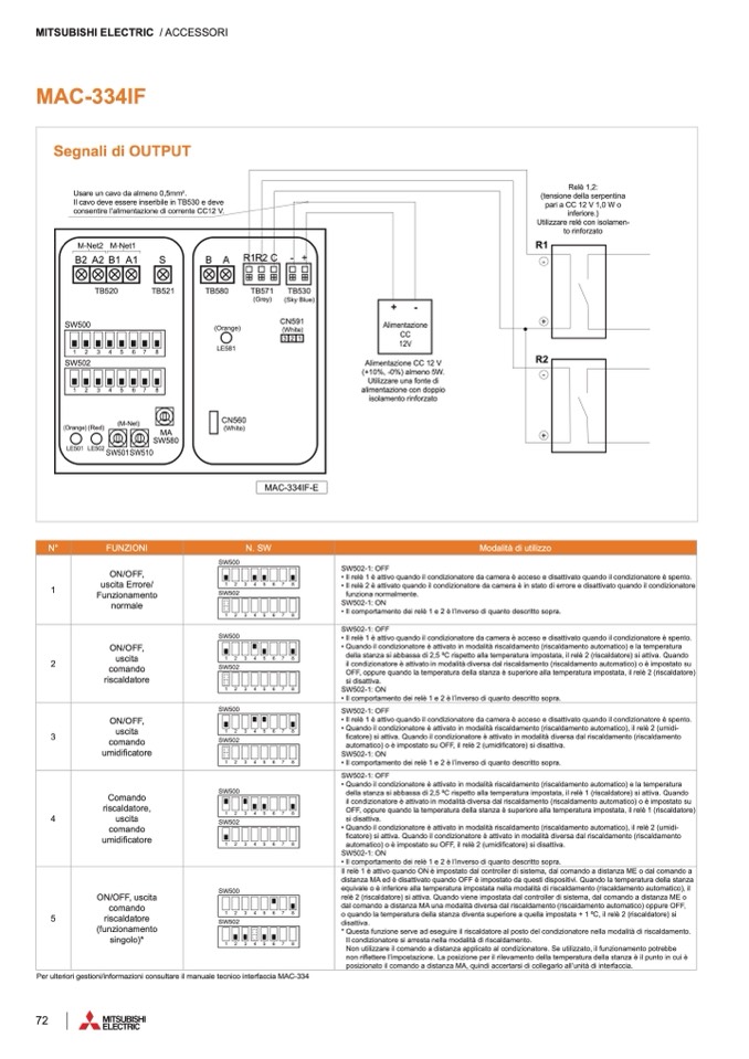 • Il relè 2 è attivato quando il condizionatore da camera è in stato di errore e disattivato quando il condizionatore