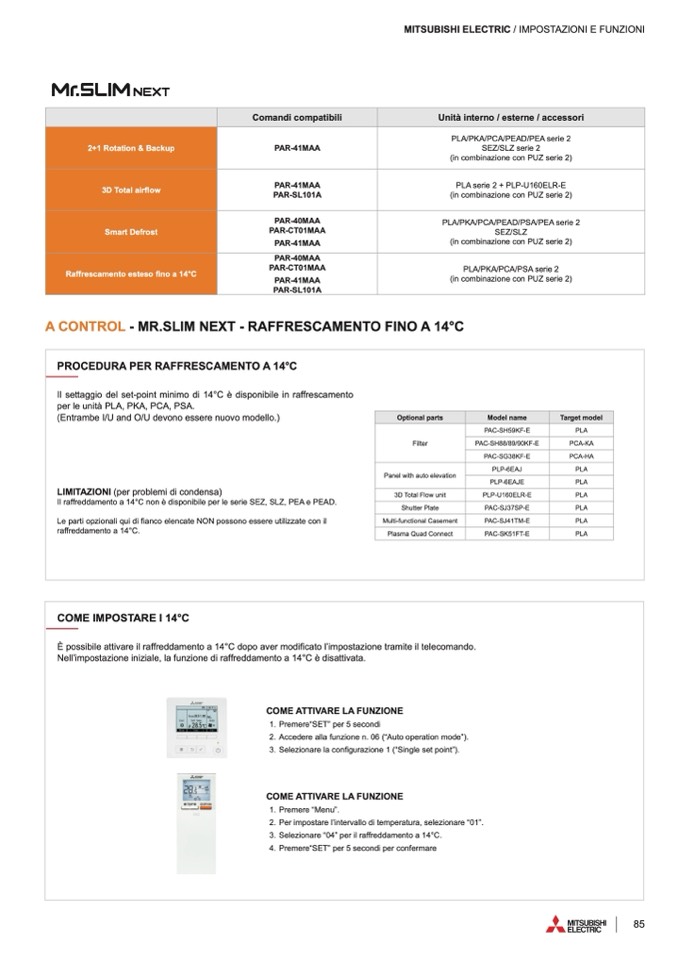 MITSUBISHI ELECTRIC / IMPOSTAZIONI E FUNZIONI