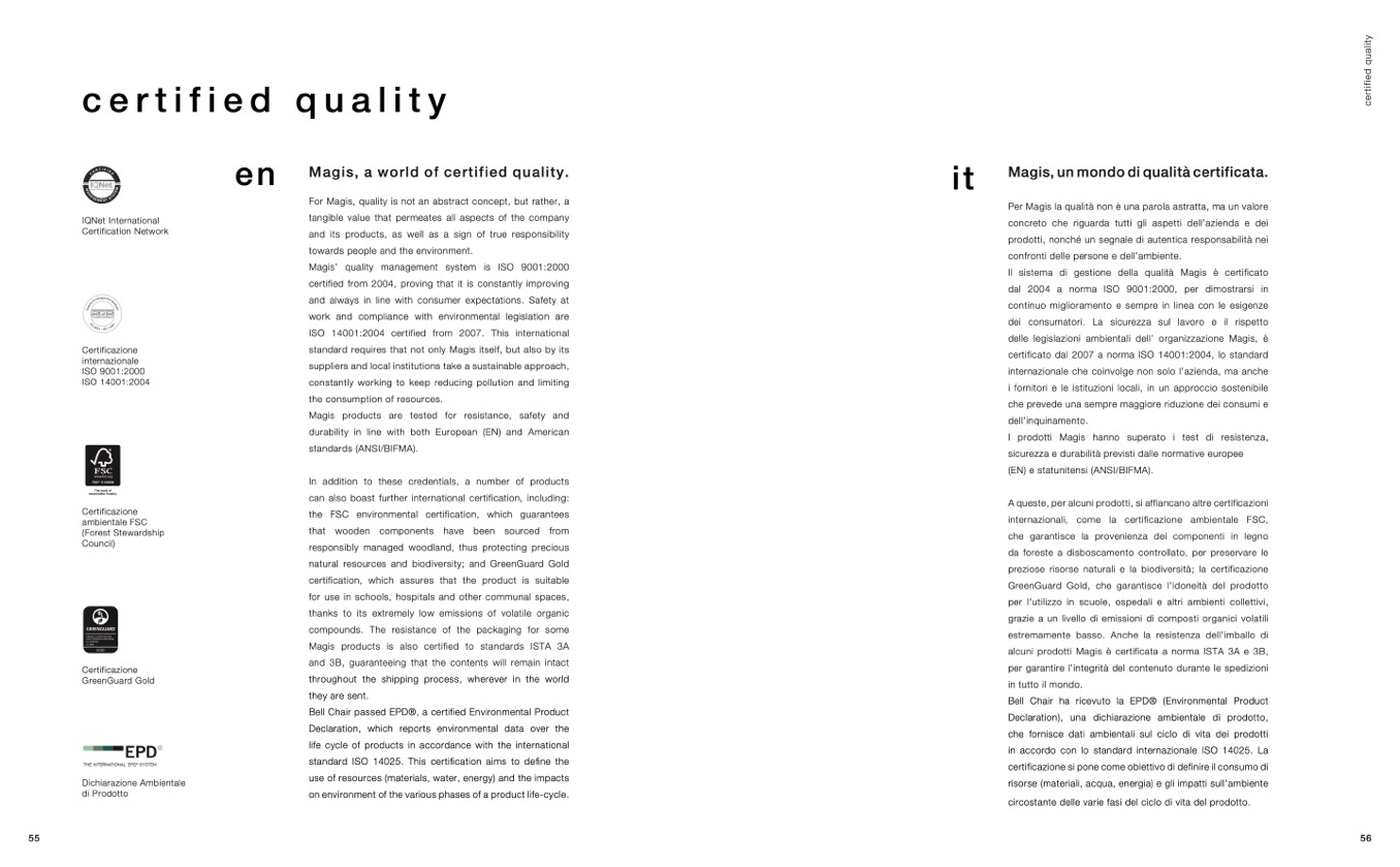 Magis’ quality management system is ISO 9001:2000