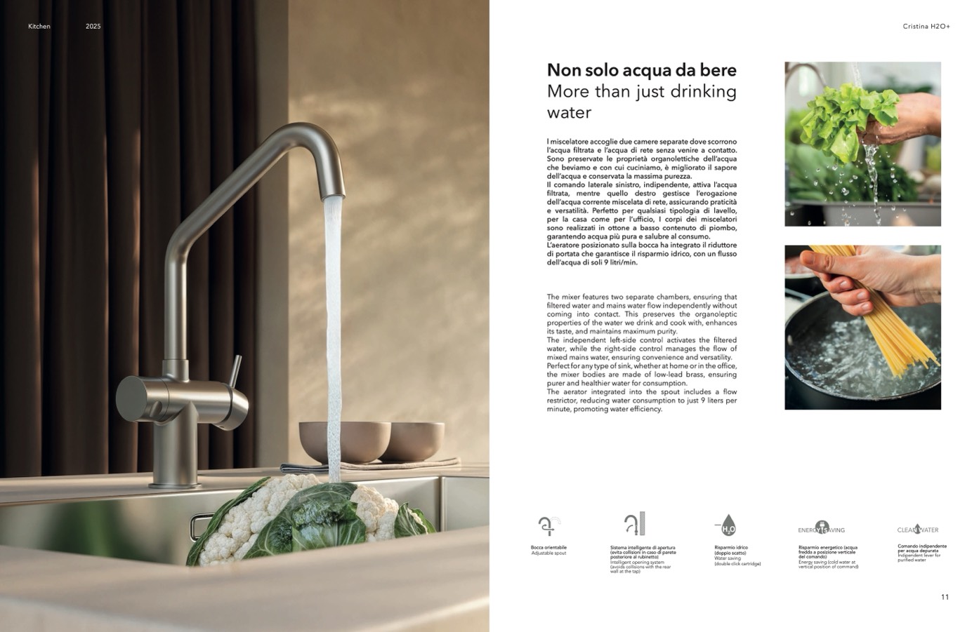 Il comando laterale sinistro, indipendente, attiva l’acqua