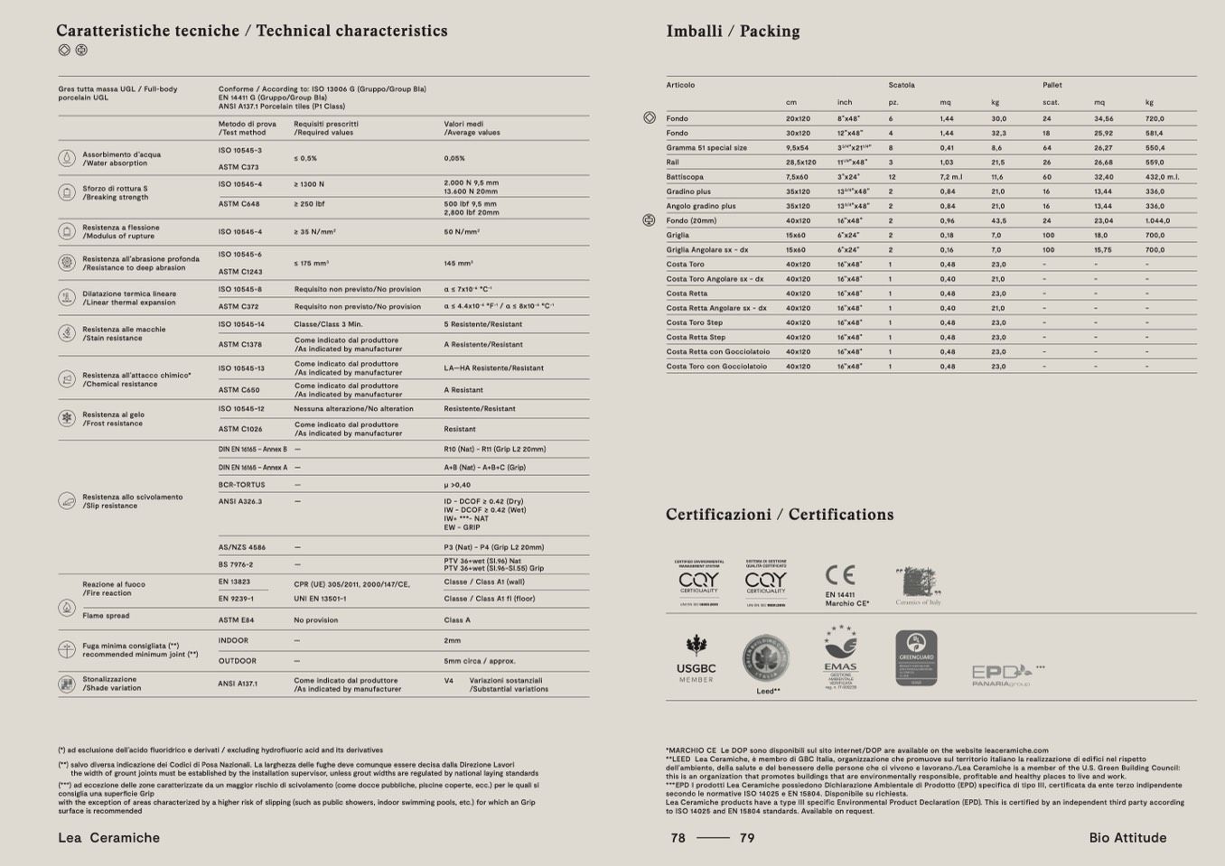 Lea Ceramiche products have a type III specific Environmental Product Declaration (EPD). This is certified by an independent third party according