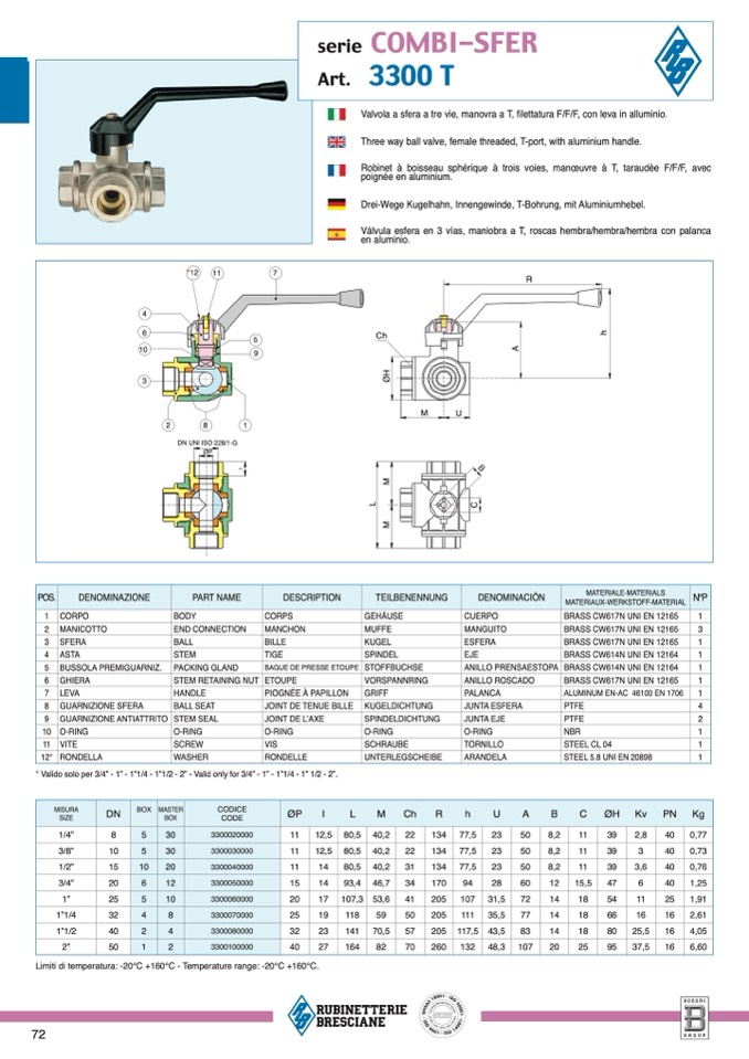 -20°C +160°C - Temperature range: -20°C +160°C.