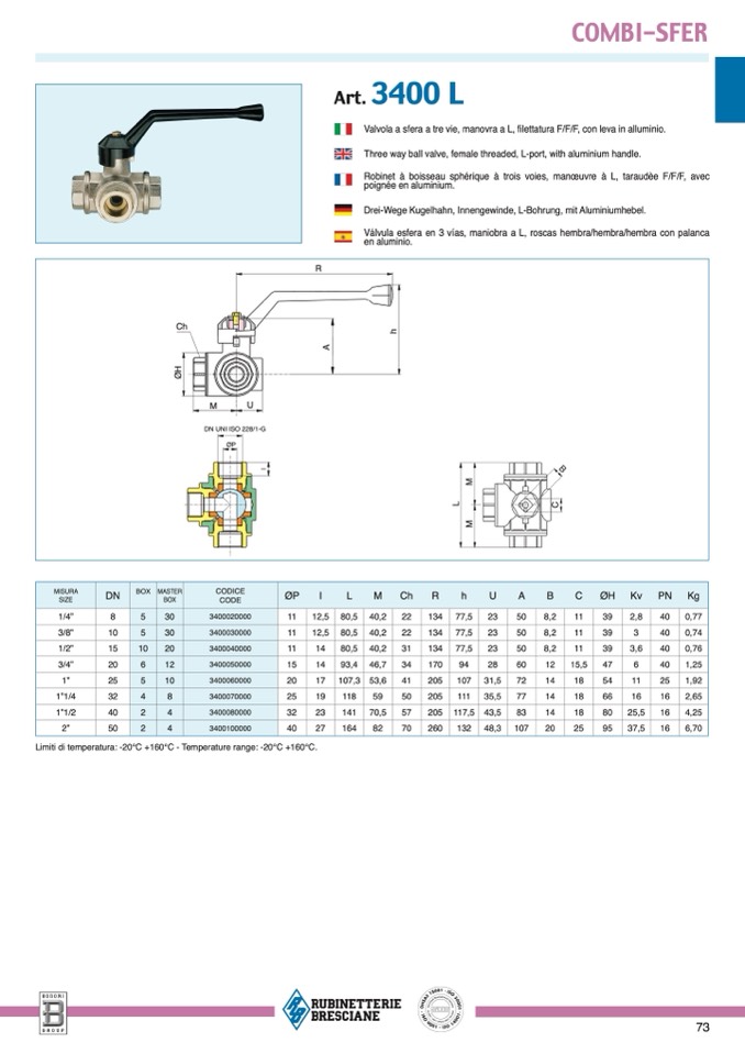-20°C +160°C - Temperature range: -20°C +160°C.