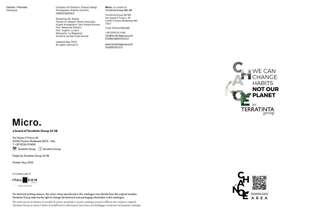 Terratinta Group si riserva il diritto di modificare le informazioni tecniche e di imballaggio contenute nel presente catalogo.