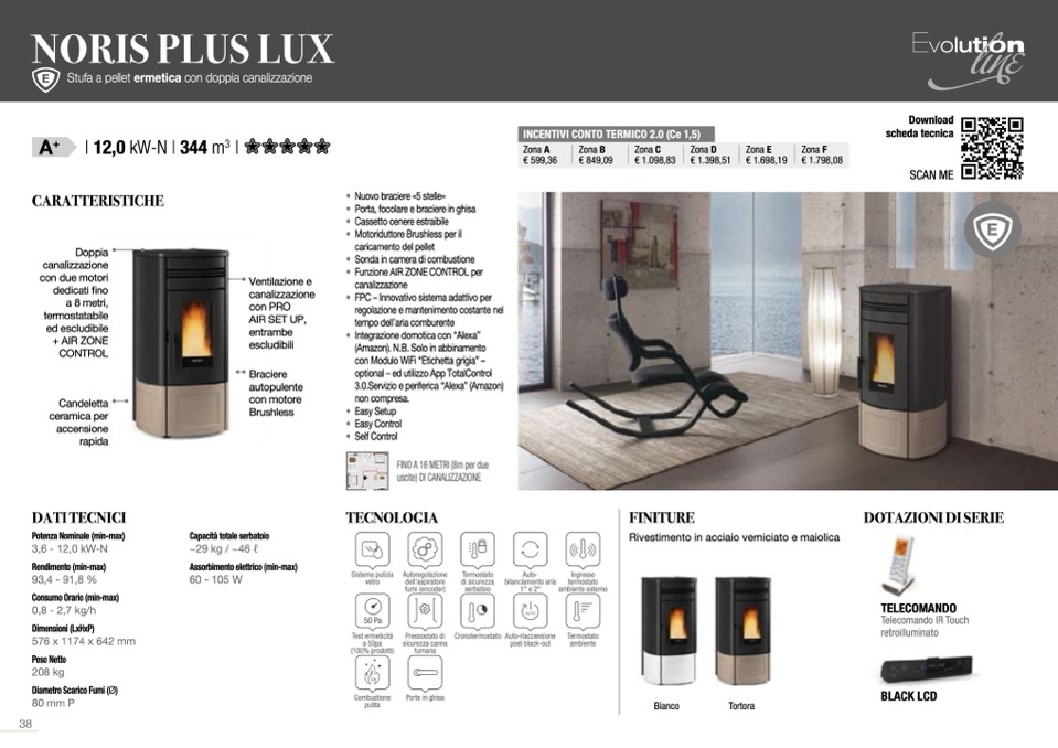 Stufa a pellet ermetica con doppia canalizzazione