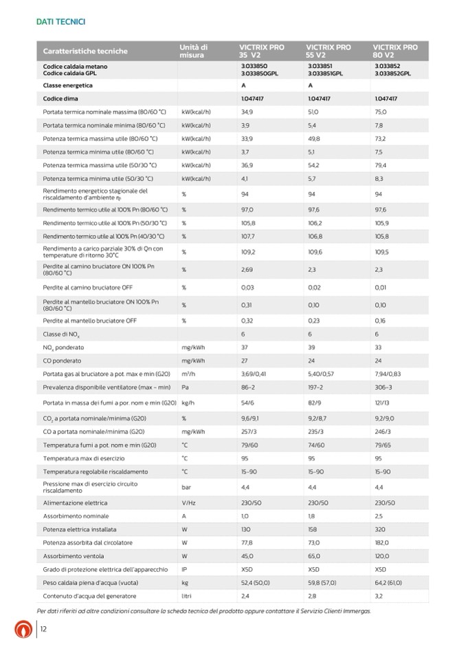 Per dati riferiti ad altre condizioni consultare la scheda tecnica del prodotto oppure contattare il Servizio Clienti Immergas.