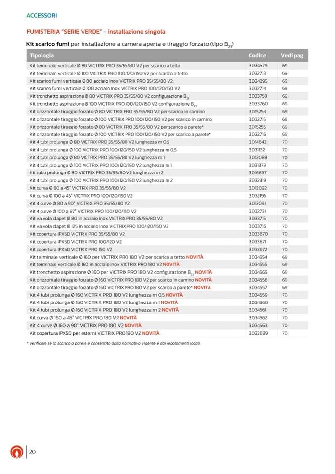 Kit orizzontale tiraggio forzato Ø 160 VICTRIX PRO 180 V2 per scarico in camino NOVITÀ