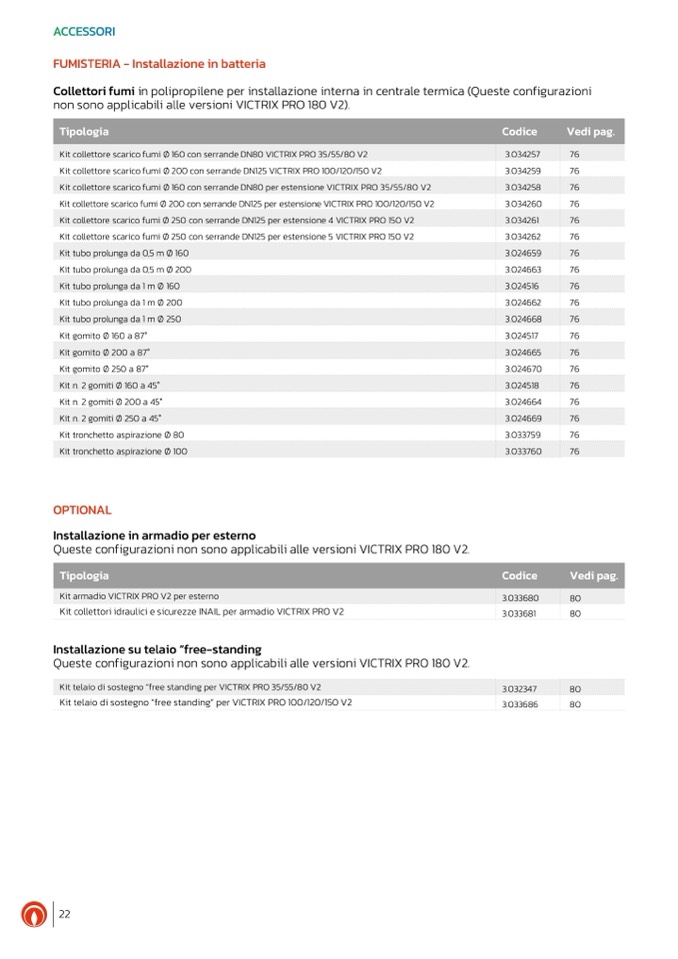 Kit collettore scarico fumi Ø 200 con serrande DN125 per estensione VICTRIX PRO 100/120/150 V2