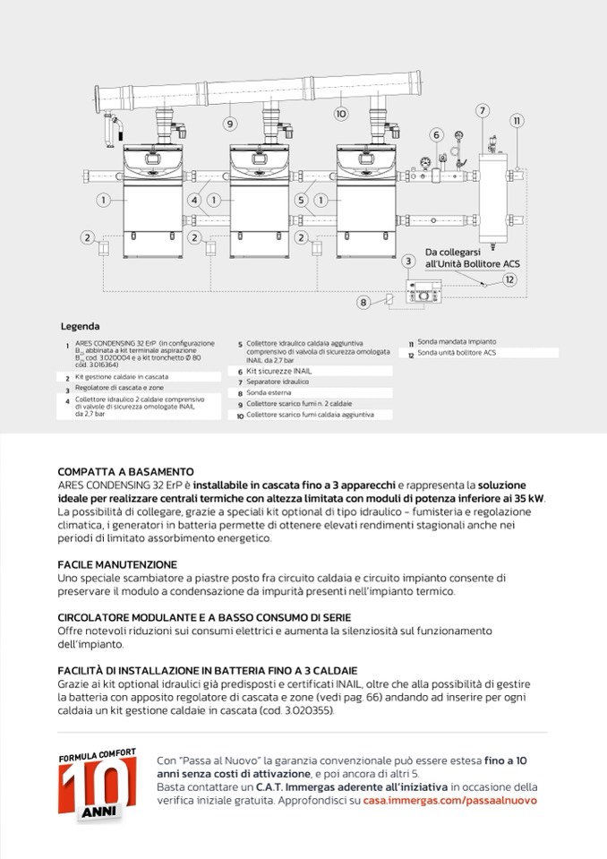 ARES CONDENSING 32 ErP è installabile in cascata fino a 3 apparecchi e rappresenta la soluzione