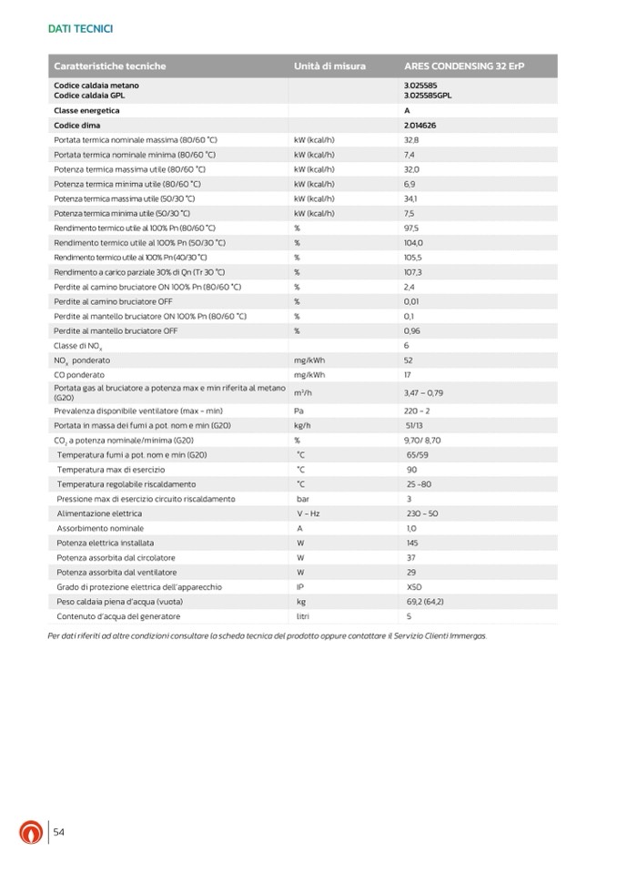 Per dati riferiti ad altre condizioni consultare la scheda tecnica del prodotto oppure contattare il Servizio Clienti Immergas.