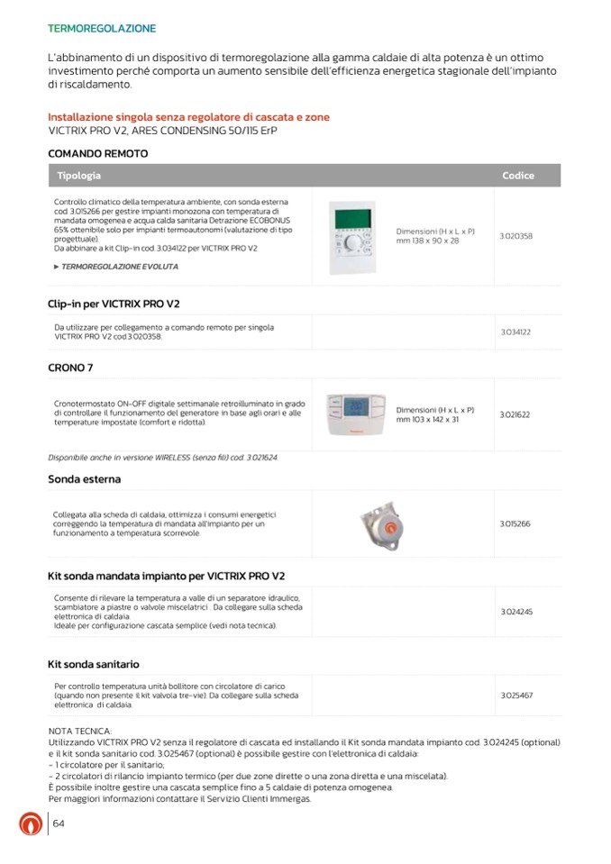 cod. 3.015266 per gestire impianti monozona con temperatura di