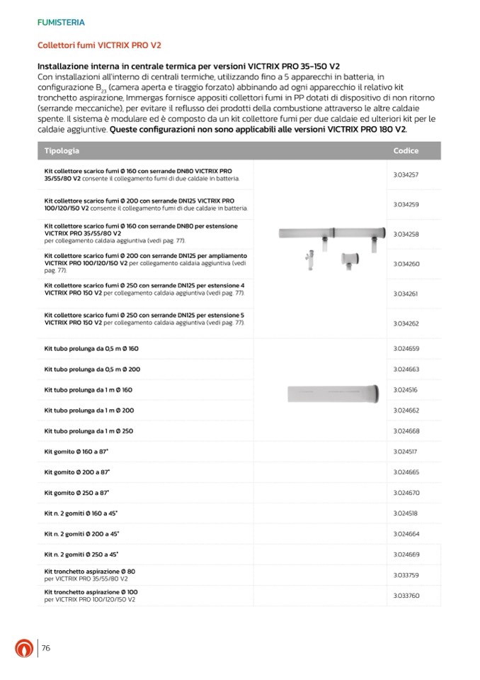 Kit collettore scarico fumi Ø 160 con serrande DN80 VICTRIX PRO