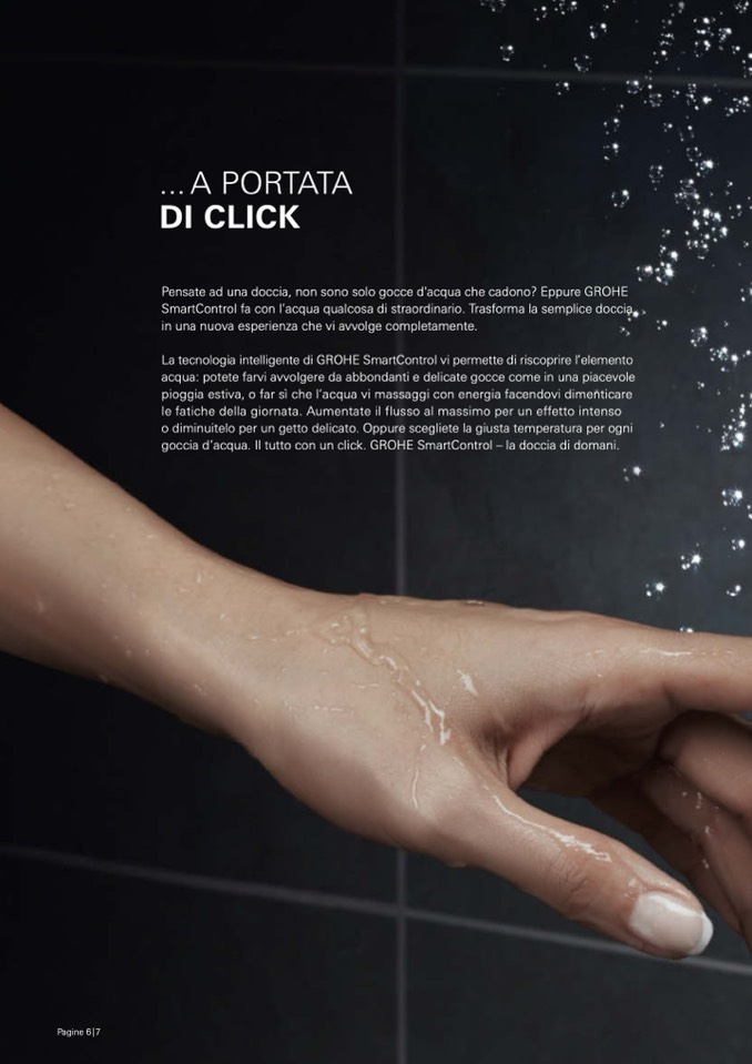 goccia d’acqua. Il tutto con un click. GROHE SmartControl – la doccia di domani.