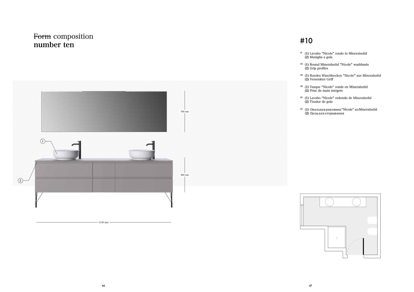(1) Lavabo “Nicole” tondo in Mineralsolid