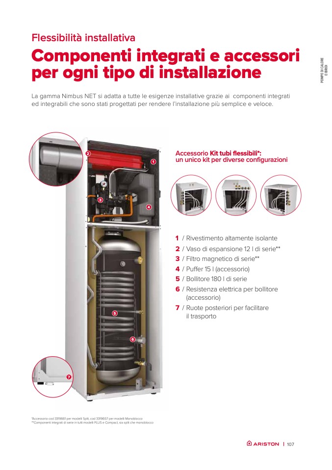 **Componenti integrati di serie in tutti modelli PLUS e Compact, sia split che monoblocco