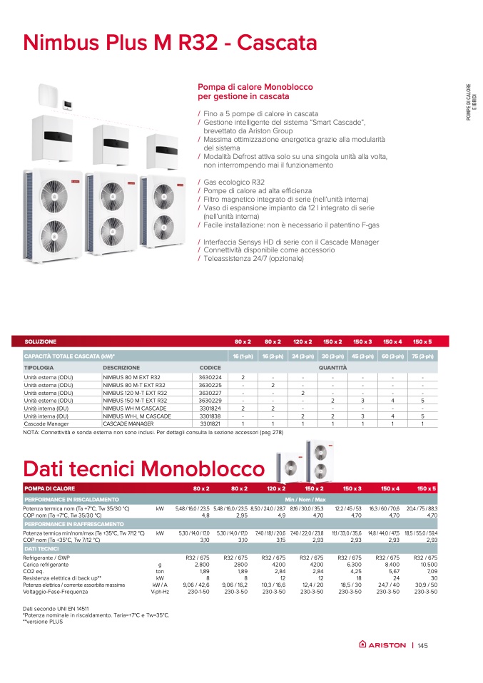 *Potenza nominale in riscaldamento. Taria=+7°C e Tw=35°C.