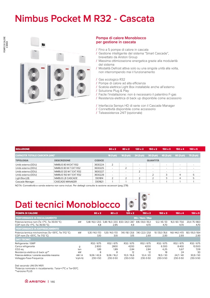 *Potenza nominale in riscaldamento. Taria=+7°C e Tw=35°C.