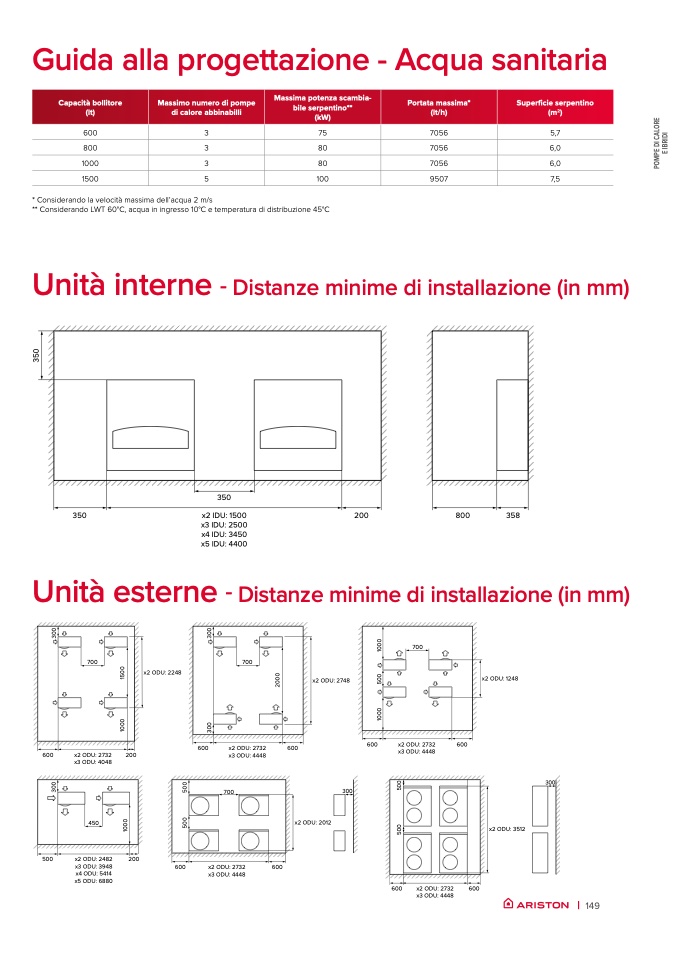 ** Considerando LWT 60°C, acqua in ingresso 10°C e temperatura di distribuzione 45°C