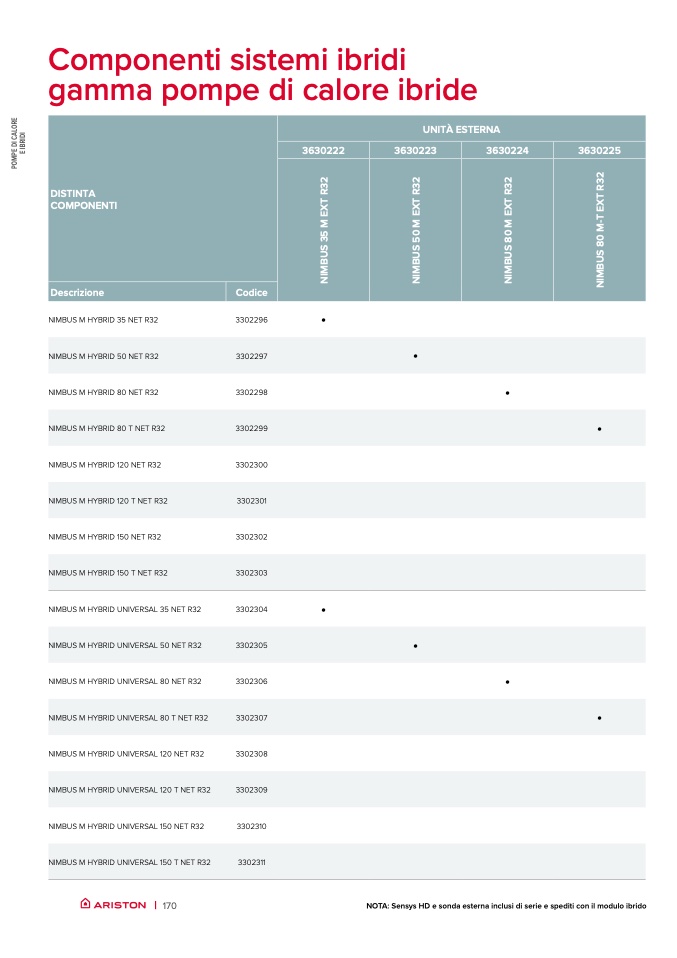 NOTA: Sensys HD e sonda esterna inclusi di serie e spediti con il modulo ibrido