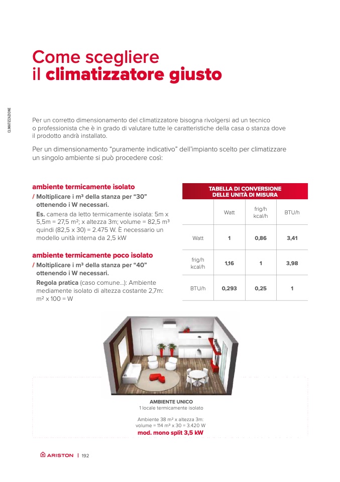 Per un corretto dimensionamento del climatizzatore bisogna rivolgersi ad un tecnico