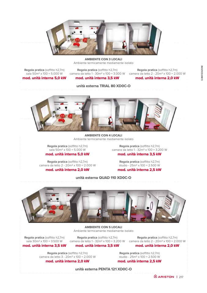 camera da letto 1 - 30m2 x 100 = 3.000 W