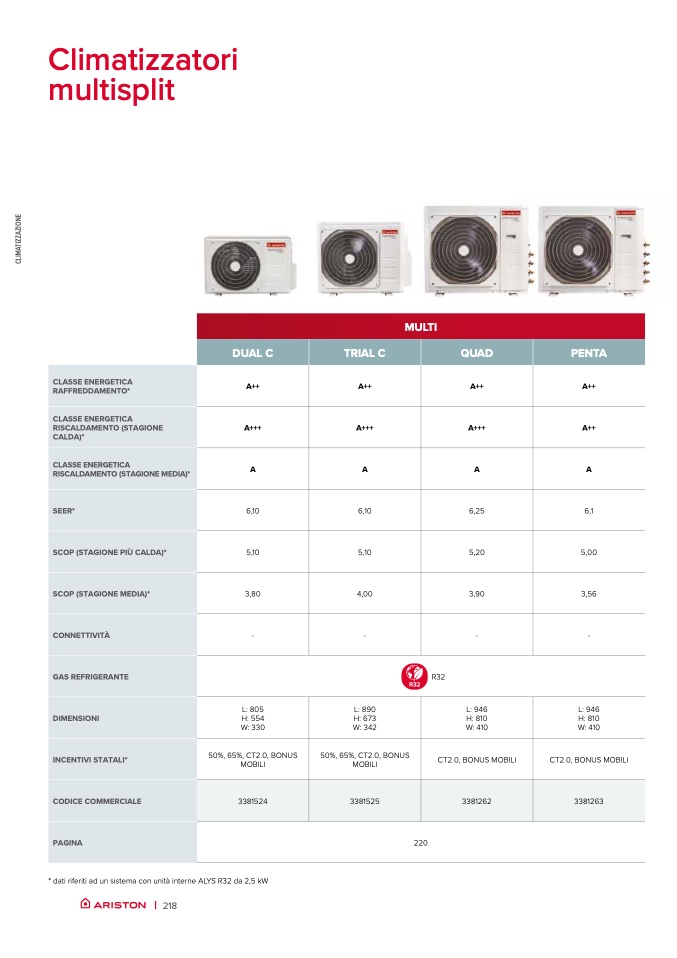 * dati riferiti ad un sistema con unità interne ALYS R32 da 2,5 kW