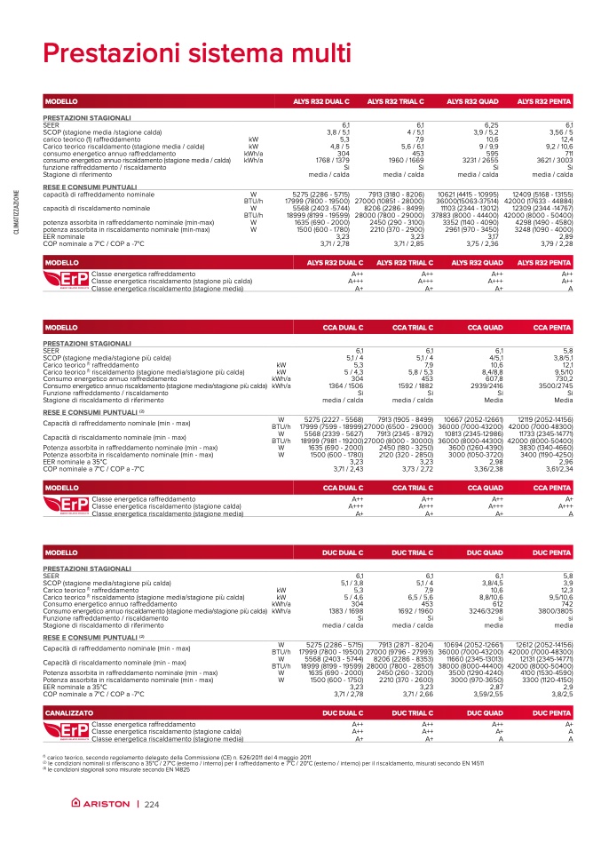 le condizioni nominali si riferiscono a 35°C / 27°C (esterno / interno) per il ra