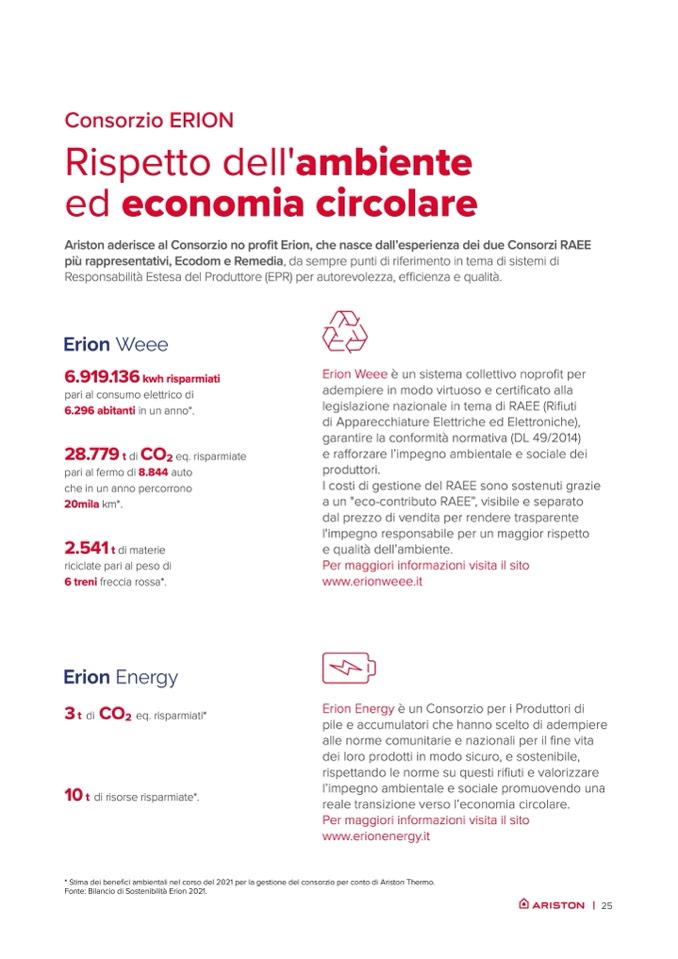 * Stima dei benefici ambientali nel corso del 2021 per la gestione del consorzio per conto di Ariston Thermo.