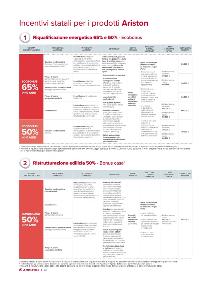 Tutte le tecnologie ammesse sono direttamente correlate agli interventi ammessi, descritti al cap. 3 della “Guida dell’Agenzia delle Entrate per le Agevolazioni fiscali per Risparmio Energetico”