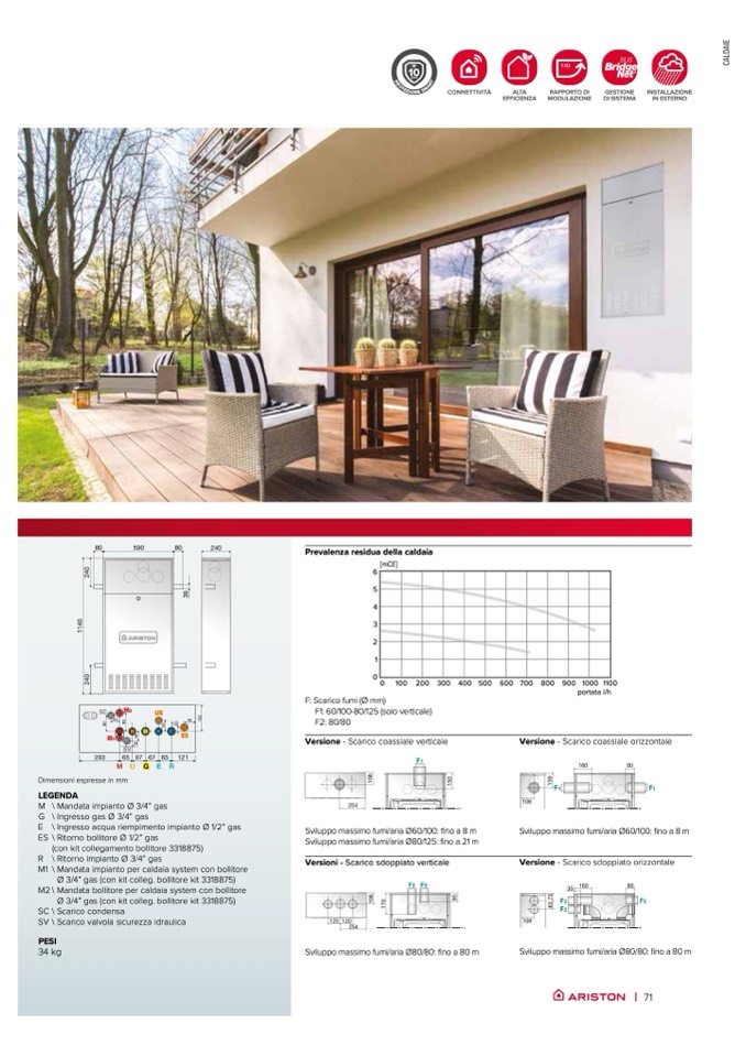 Sviluppo massimo fumi/aria Ø80/125: fino a 21 m
